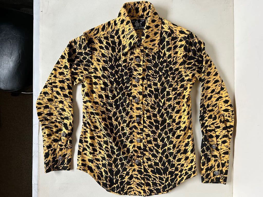 - ミラクルウーマン クリームソーダヒョウ柄ウエスタンシャツ イエロー×ブラック ドクロスナップボタン 検ロックンロール ロカビリー