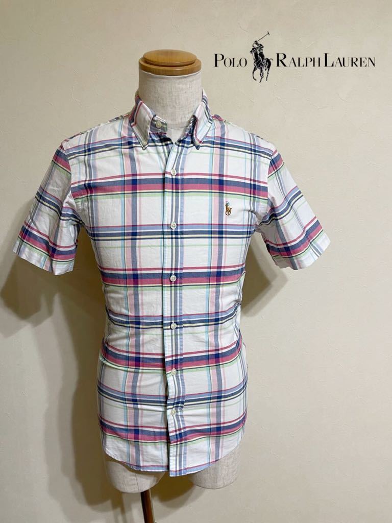 - 【良品】 Polo Ralph Lauren ポロ ラルフローレン ボタンダウン シャツ トップス サイズXS 半袖 白 タータンチェック柄