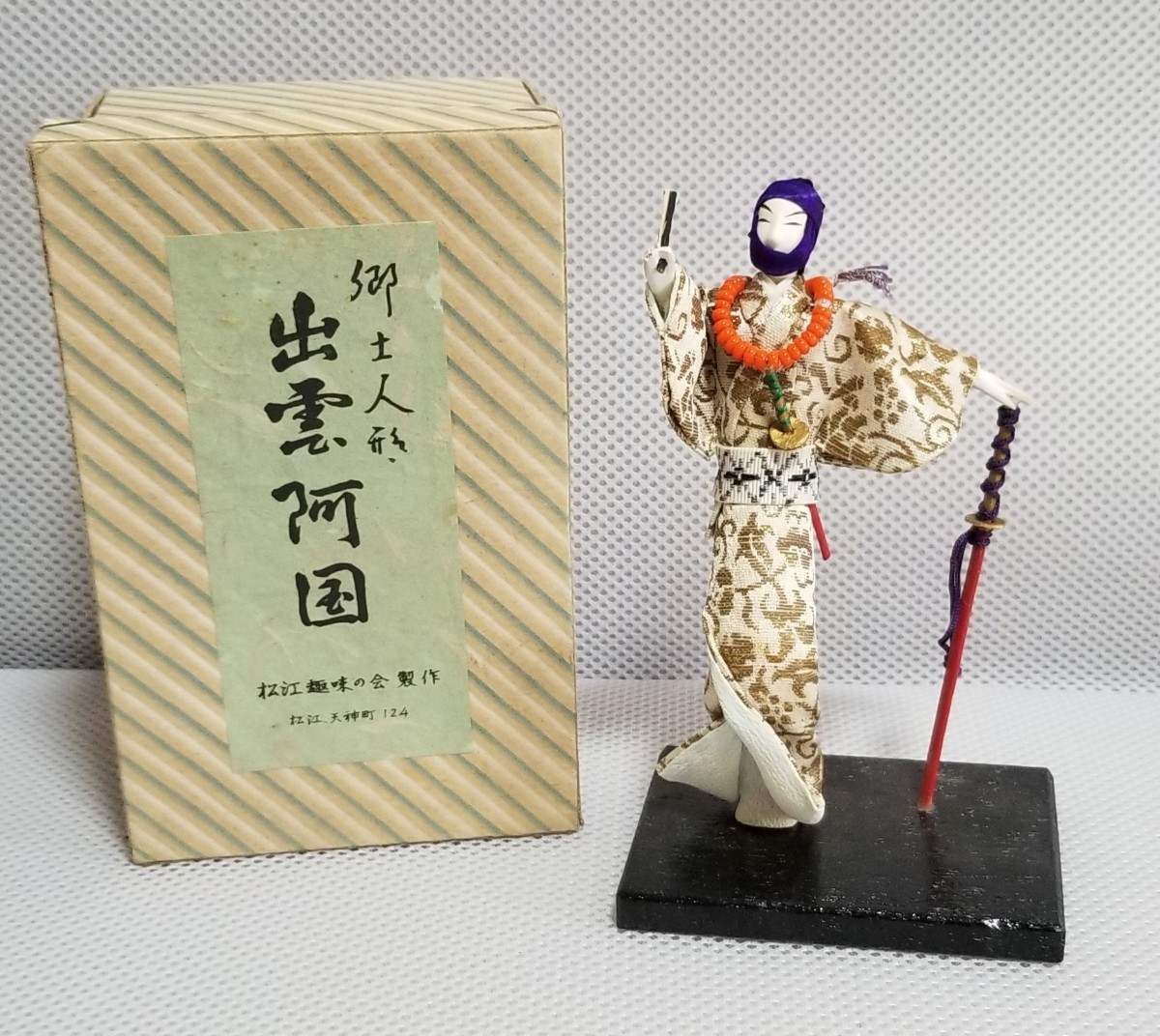 - T-250【昭和レトロ】出雲阿国 1体 人形 郷土人形 松江 出雲の阿国 日本人形 かぶき踊り 歌舞伎 出雲大社 台付き 松江趣味の会 自宅保管品