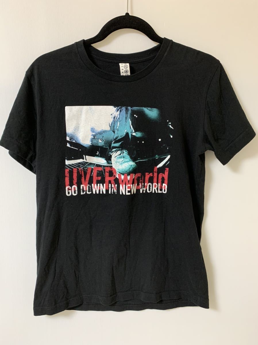 > 即決/UVER world ツアーTシャツ/Mサイズ/プリントデザイン/ブラック/黒/ライブ/バンT/Tee/T-shirt/USED/古着/経年