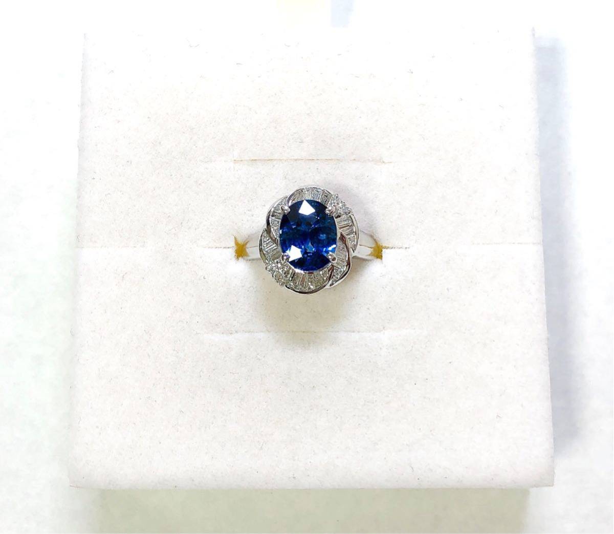 - 【質屋 尾張屋商店 東京】 ☆鑑別結果付☆ Pt900 サファイヤダイヤモンドリング レディース #11