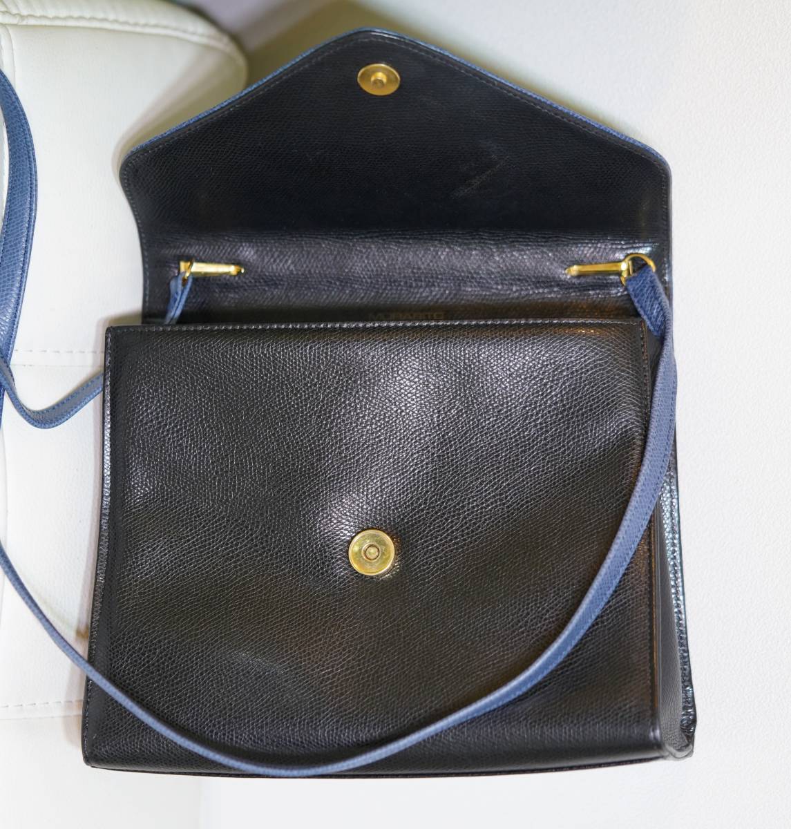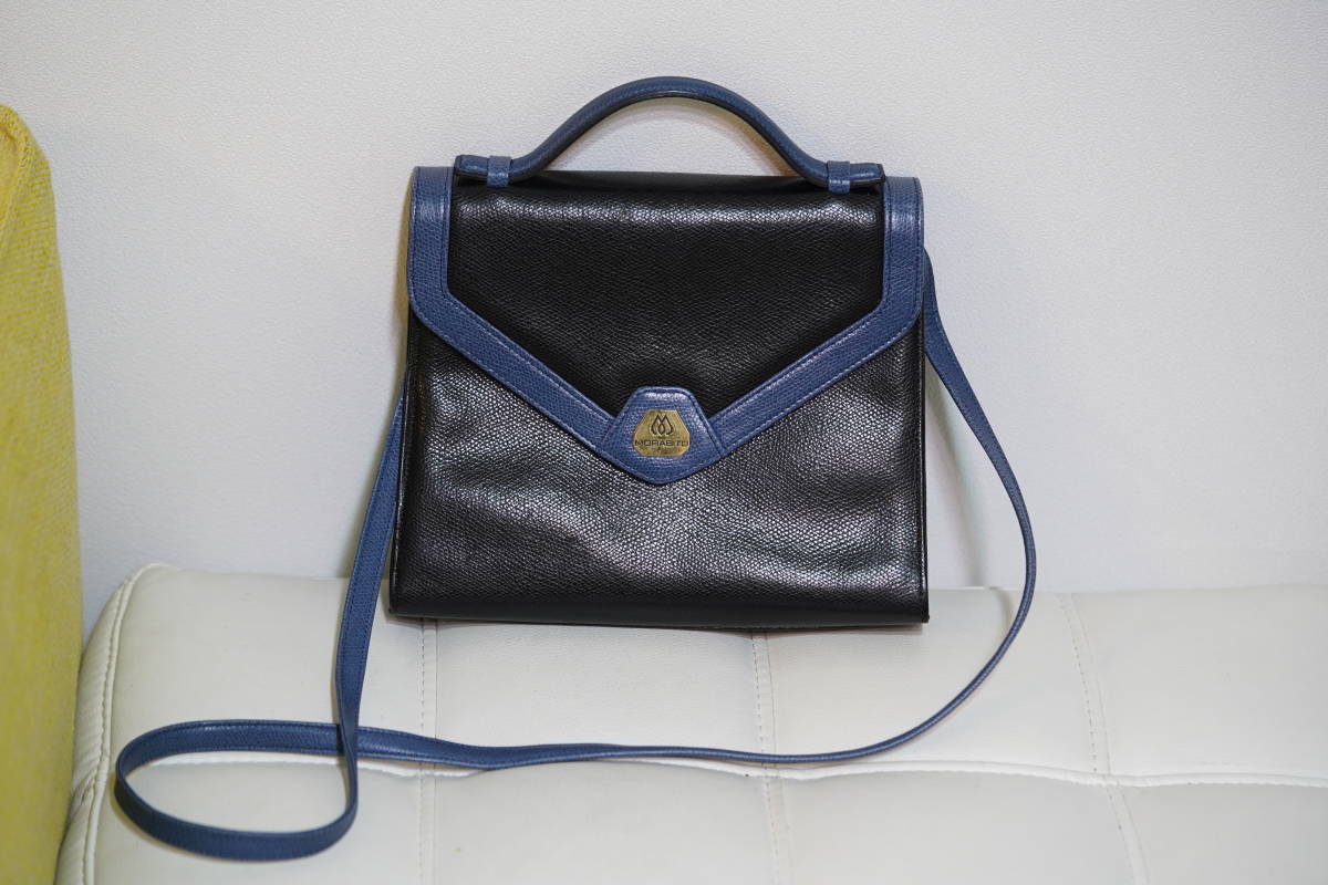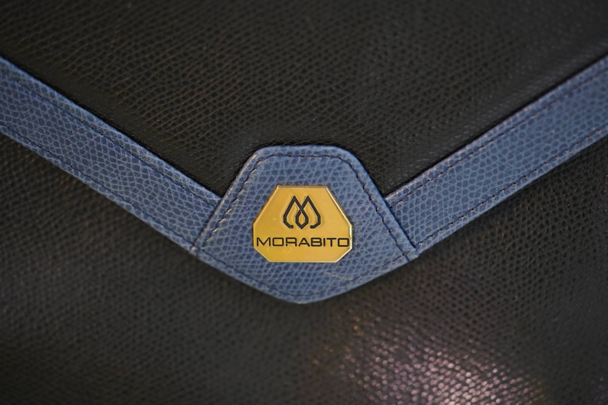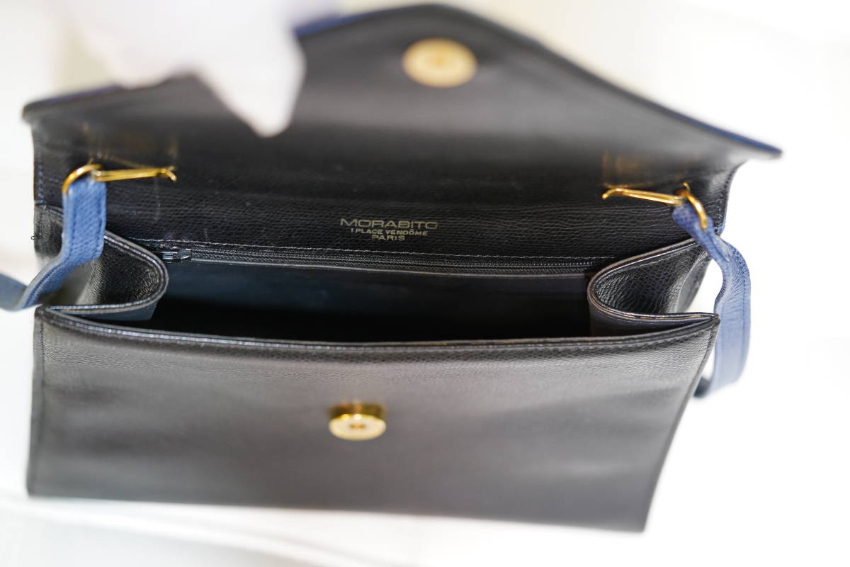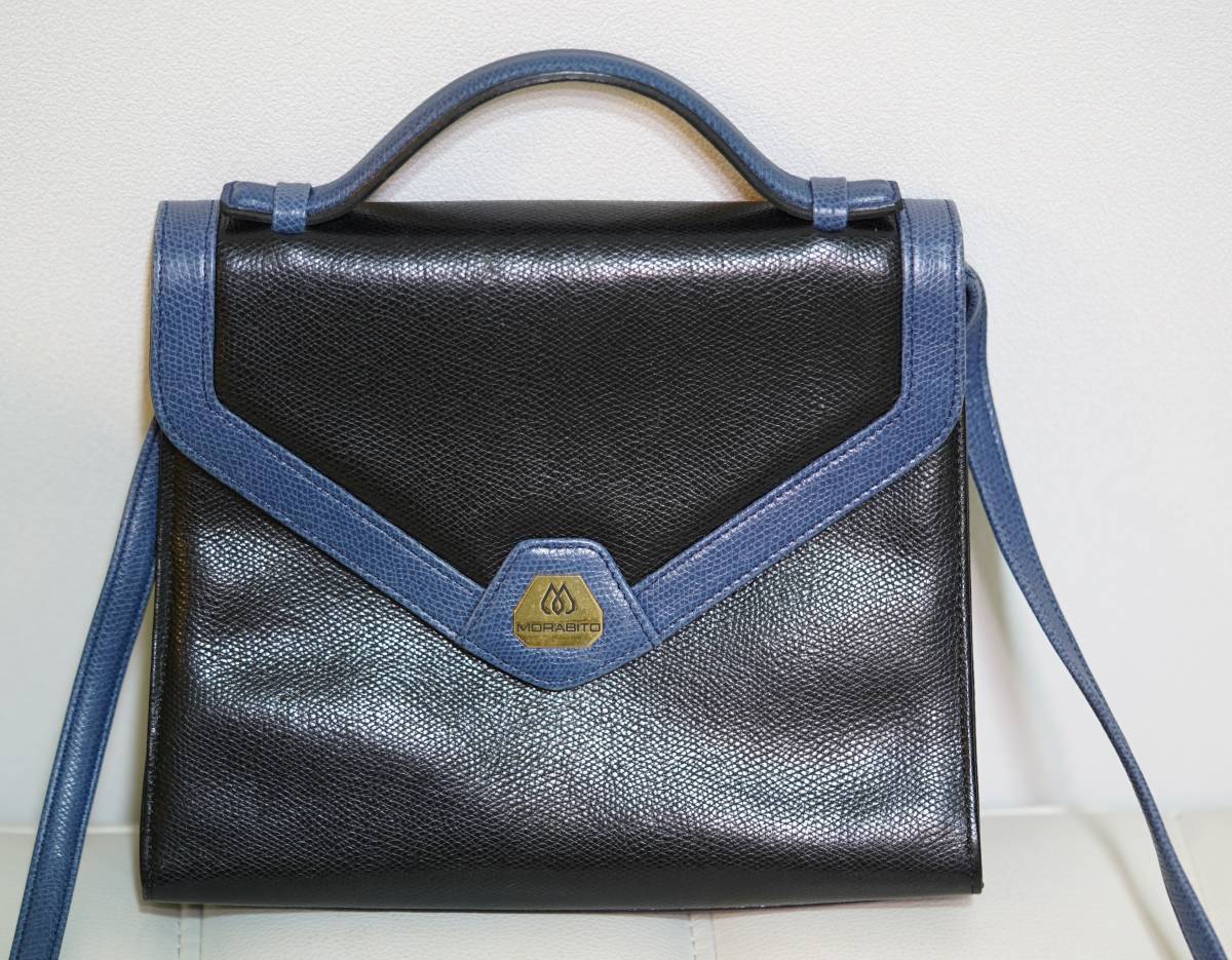 - 送料無料 MORABITO モラビト 本革製 ゴールド金具 ハンドバッグ 黒 青 ショルダー付き