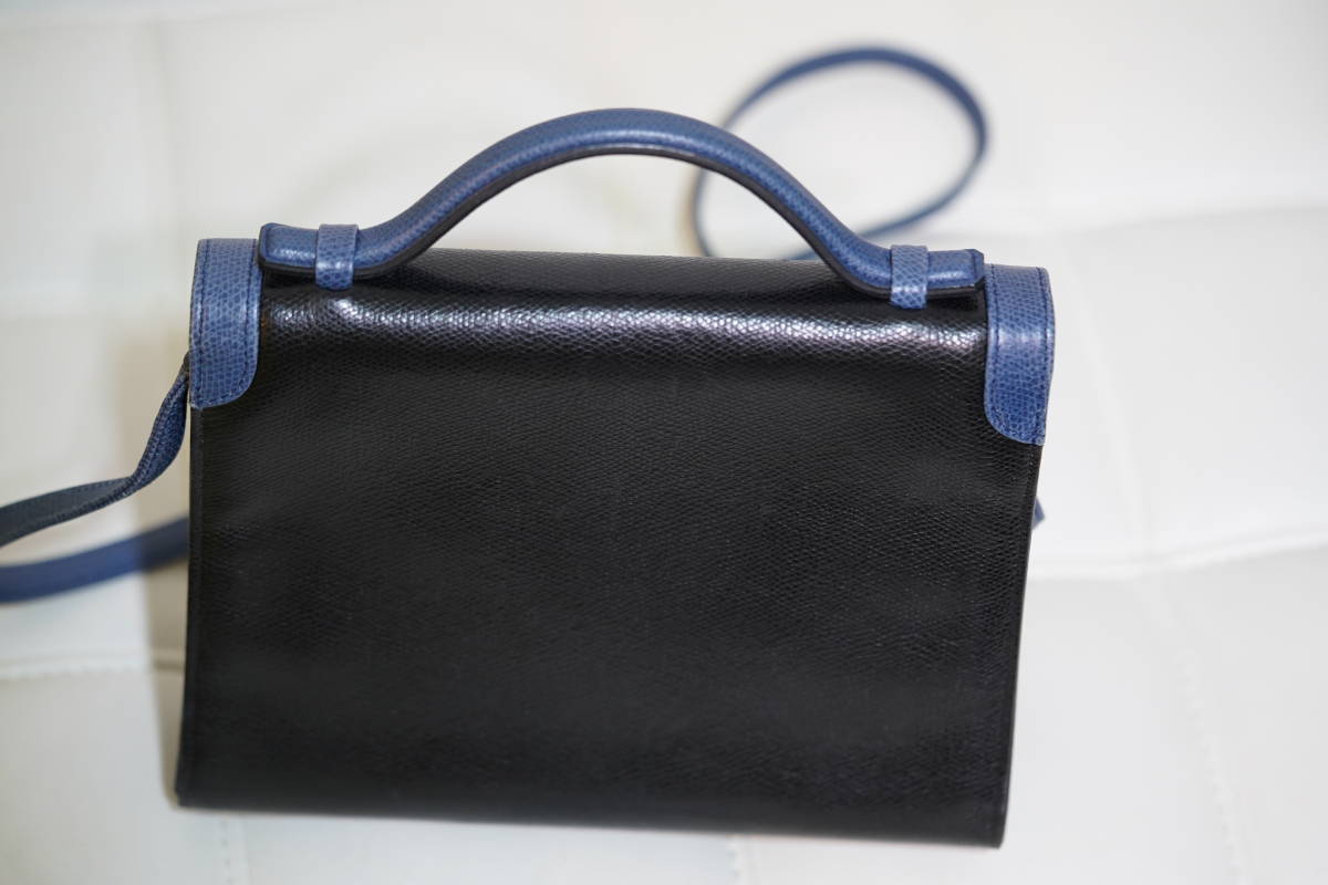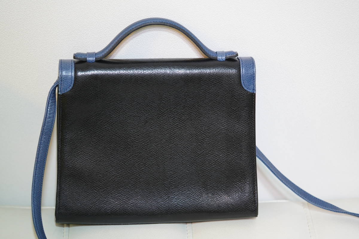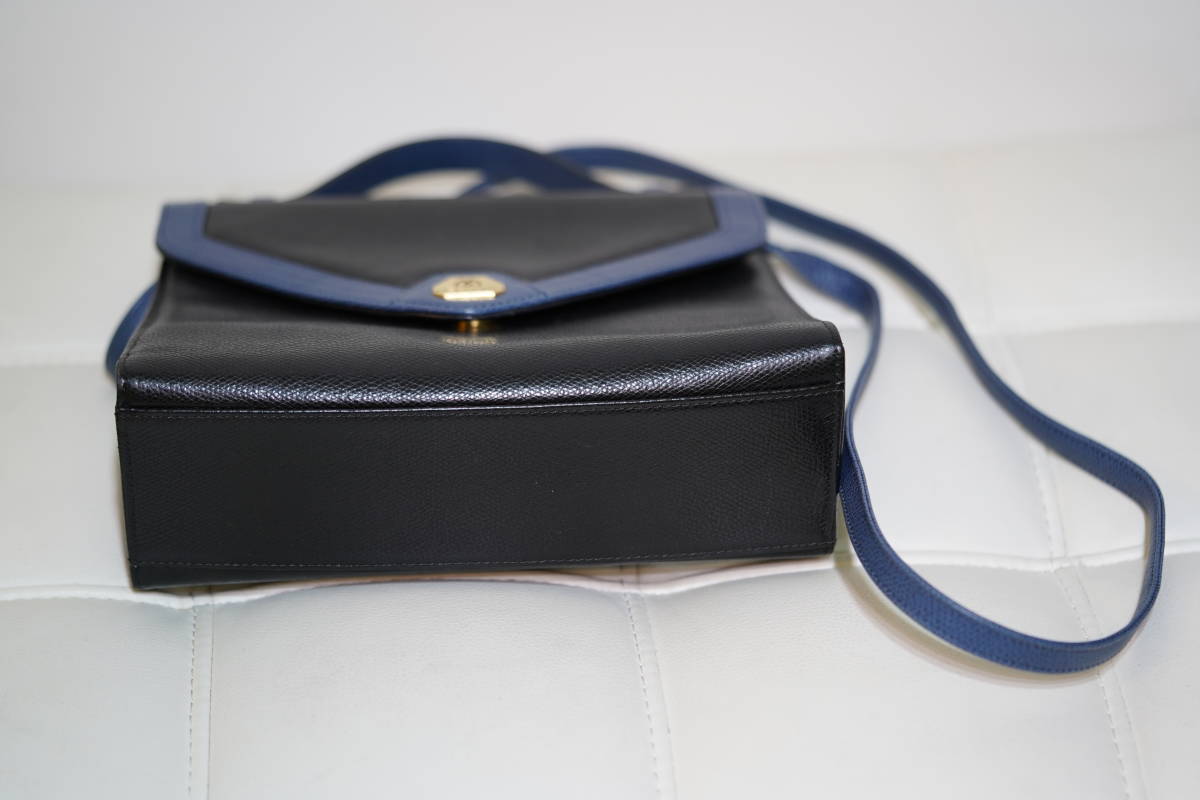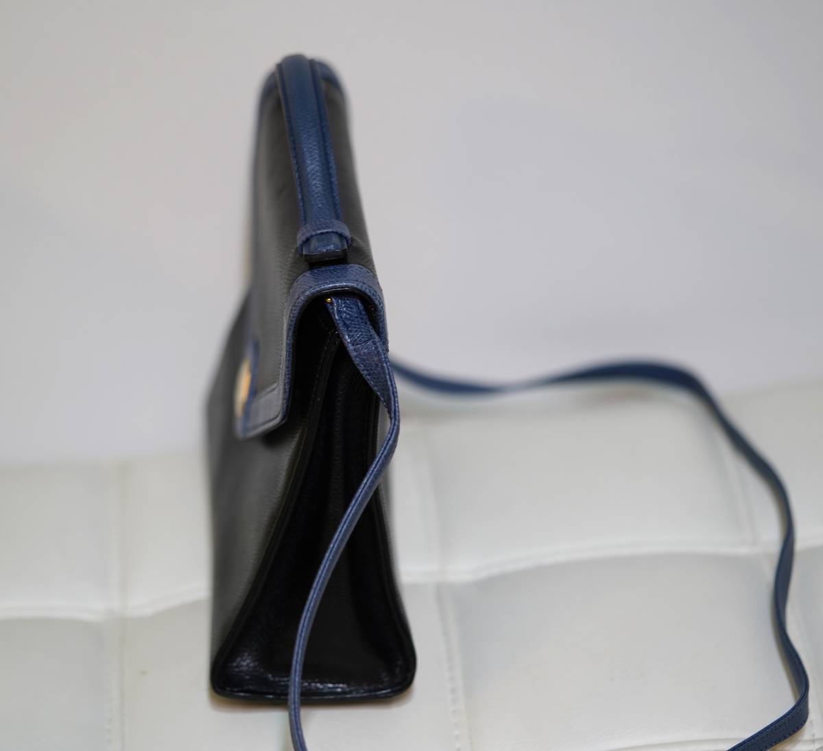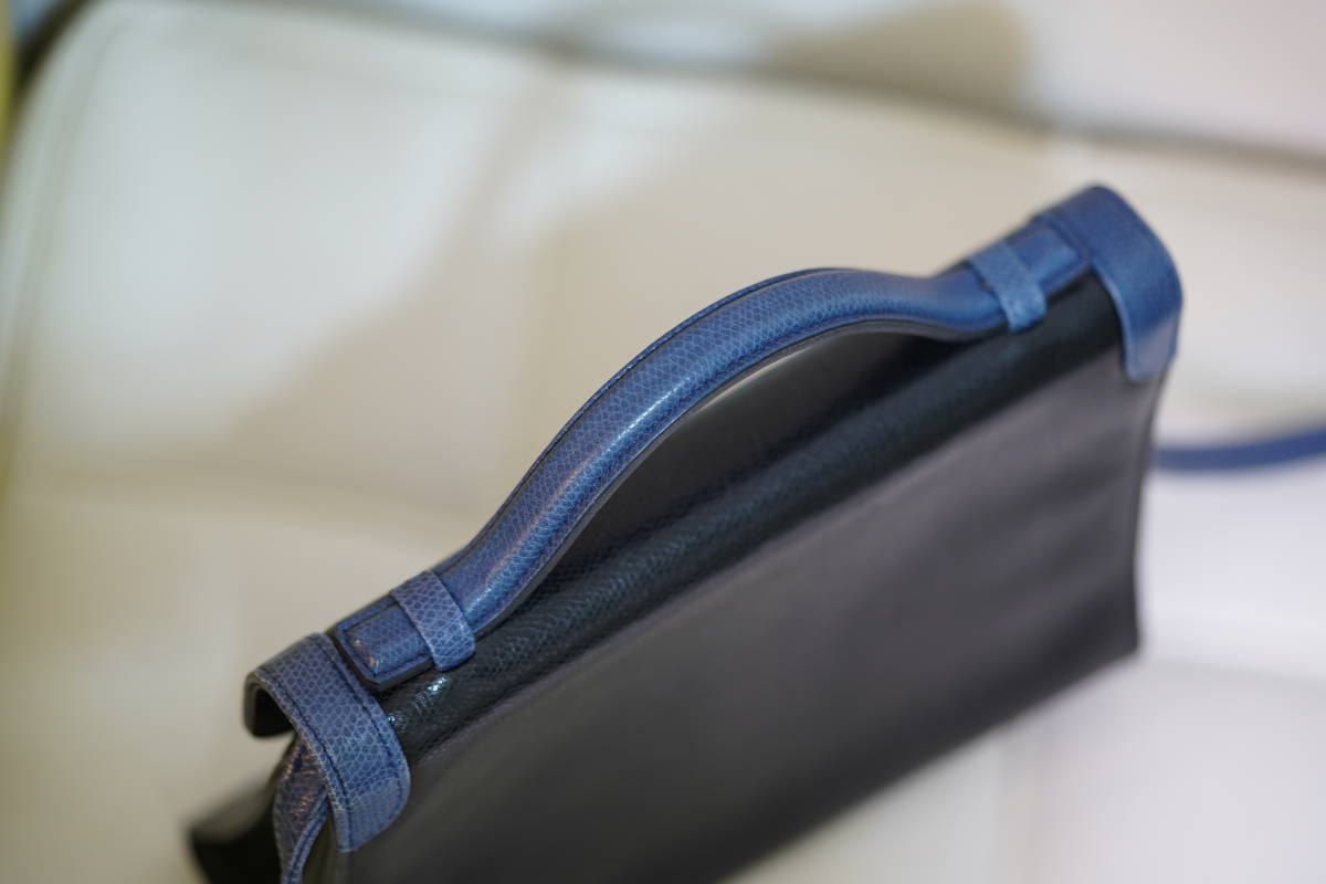 - 送料無料 MORABITO モラビト 本革製 ゴールド金具 ハンドバッグ 黒 青 ショルダー付き