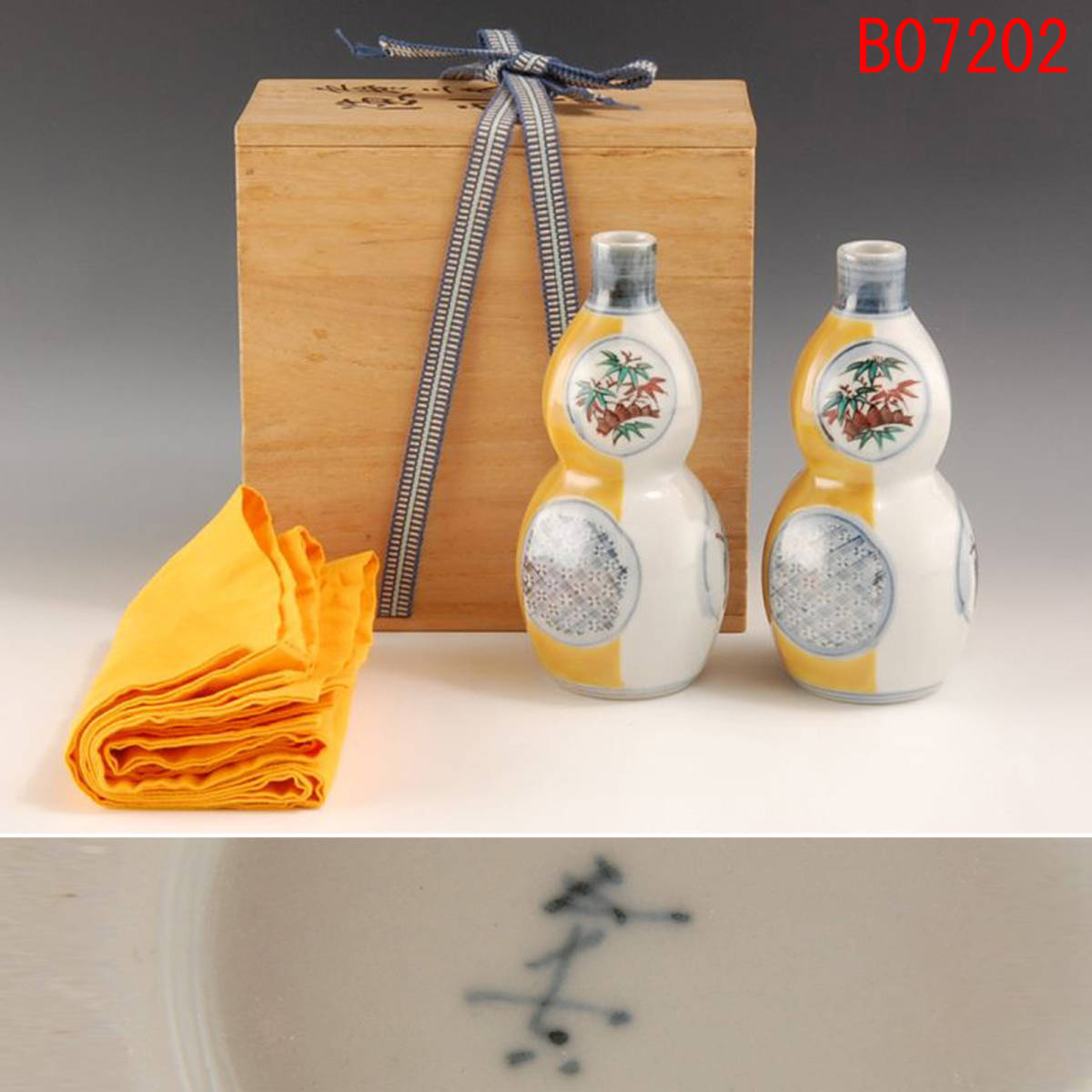 - B07202 浅蔵五十吉 色絵三友之譜徳利:真作