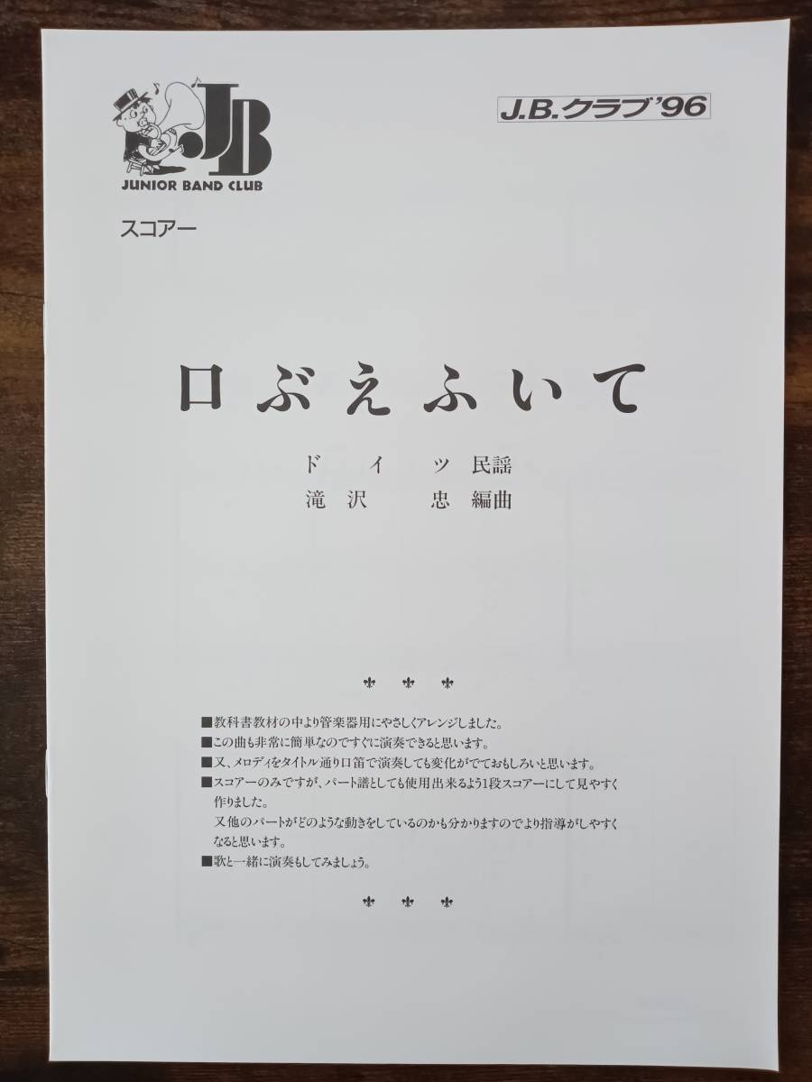 - 送料無料 吹奏楽楽譜 ドイツ民謡:口ぶえふいて 滝沢忠編 スコア・パート譜セット 金管バンド J.B.クラブ'96