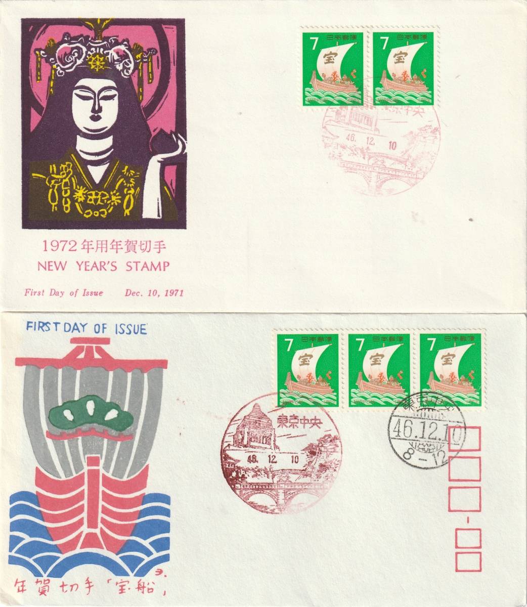 - FDC 1971年 年賀切手 宝船 7円10円 4通 JPSー松屋