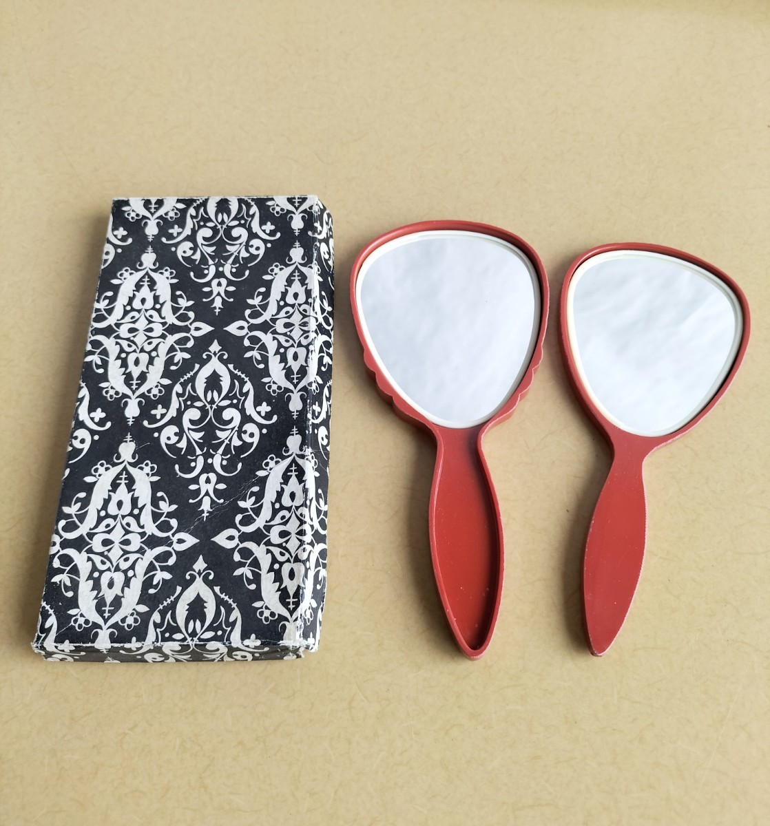 - 手鏡 淑美会 朱色 箱付き 伊勢丹 昭和レトロ