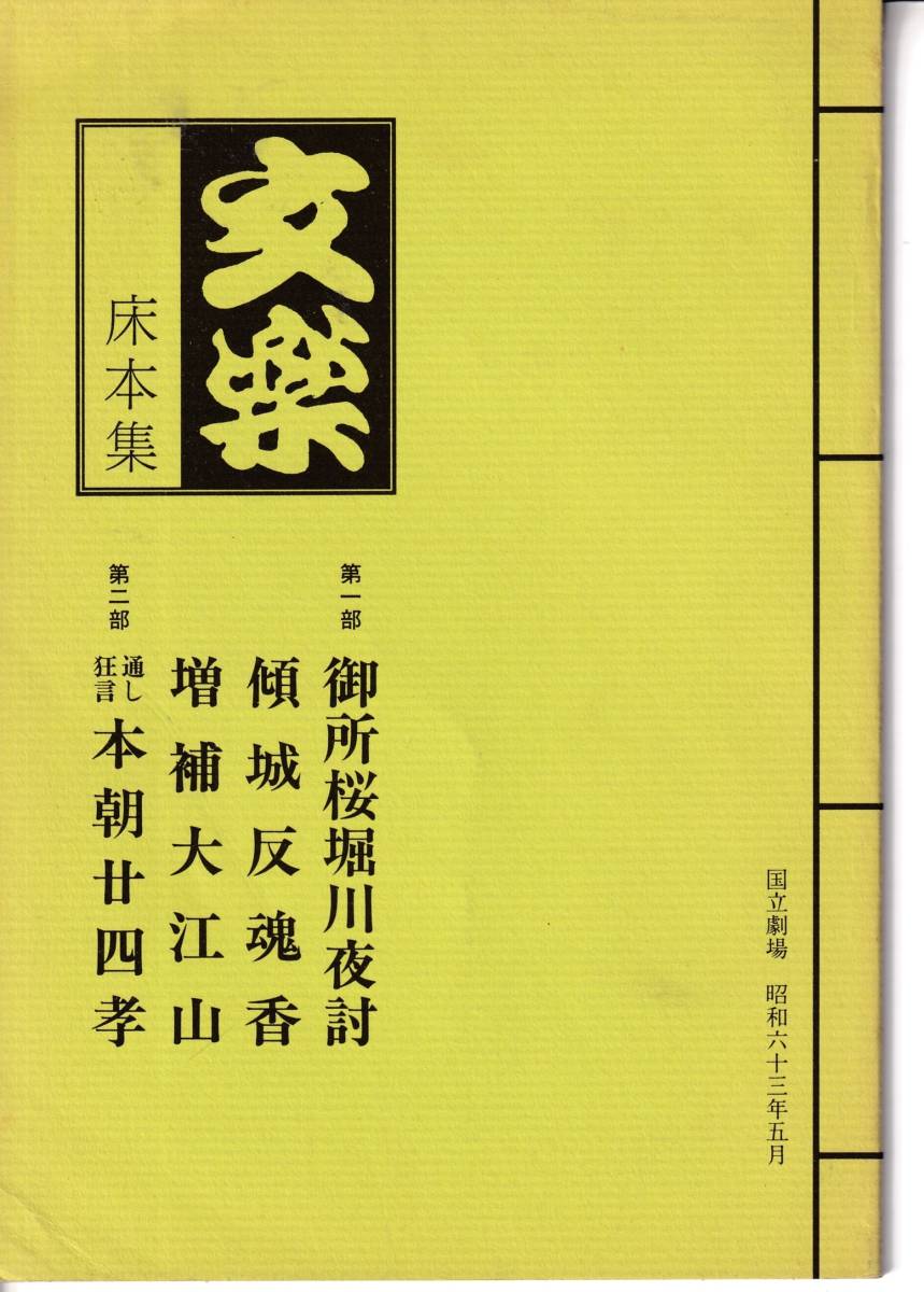 - 文楽 床本集 御所桜堀川夜討 傾城反魂香 増補大江山 本朝二十四孝