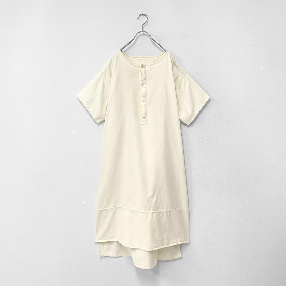- フランス ヨーロッパ ヴィンテージ レトロ ノーカラー ビッグ 半袖 グランパシャツ ロング ワンピース XL