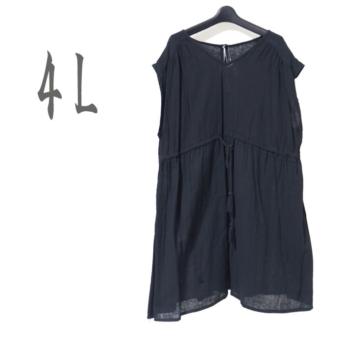 - ●新品/チュニック/ワンピース/4L/黒系/綿/無地/レディース●f9580