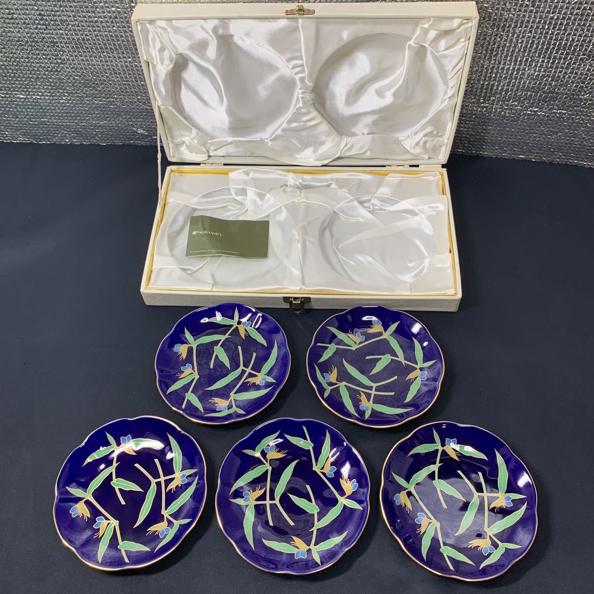 - ★大阪堺市/引き取り可★香蘭社 小皿 取り皿 5枚セット 金縁 瑠璃 高級食器 約直径12.2cm 高さ1.5cm★