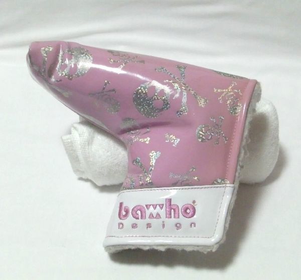 > 中古★バホ デザイン baho Design ドクロ スカル 骸骨 ピンク★マジックテープ式★63g★送料220円~★パター用ヘッドカバー★パターカバー