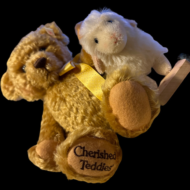 - シュタイフ Steiff テディベア チェルシー&ラム ベアと車輪のついた羊のセット 33cm USA限定