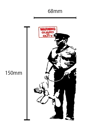 > 自作カッティングステッカー バンクシー / BANKSY 精密 2色貼り合わせ GUARD ON DUTY / 勤務中の警備員 6.8×15cm ネコポス対応[S-425]