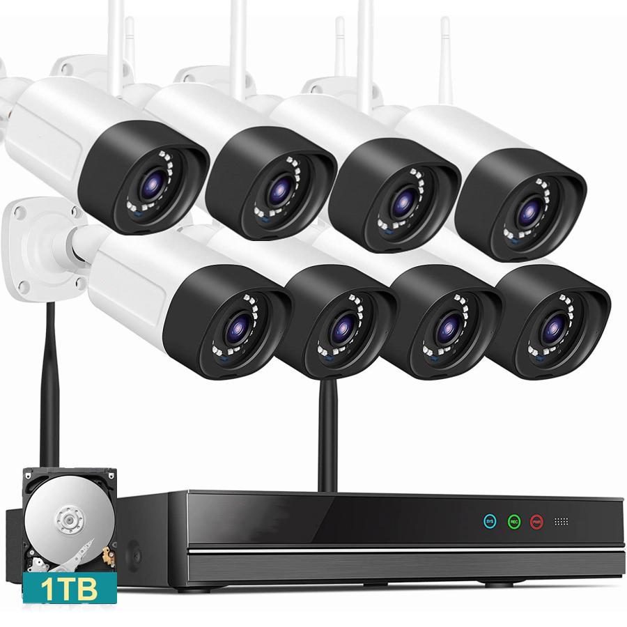 - 防犯カメラ ワイヤレス 監視カメラ 家庭用 業務用 1TB 屋内 屋外 wifi カメラセット 8台 一体型NVR HDD 遠隔監視 双方向音声