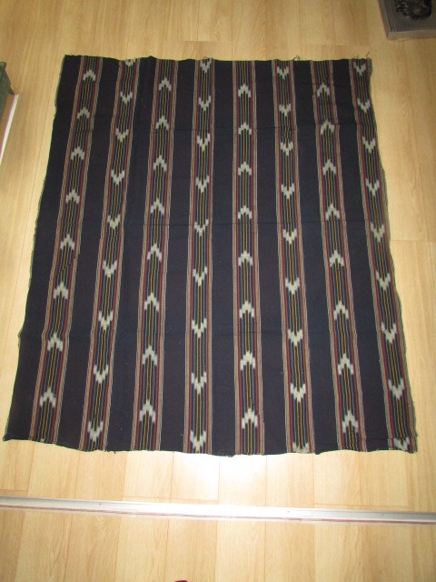 - (旧家・蔵出し)(古布・厚手木綿製・縞に絣織り出し模様生地 )貴重・珍品