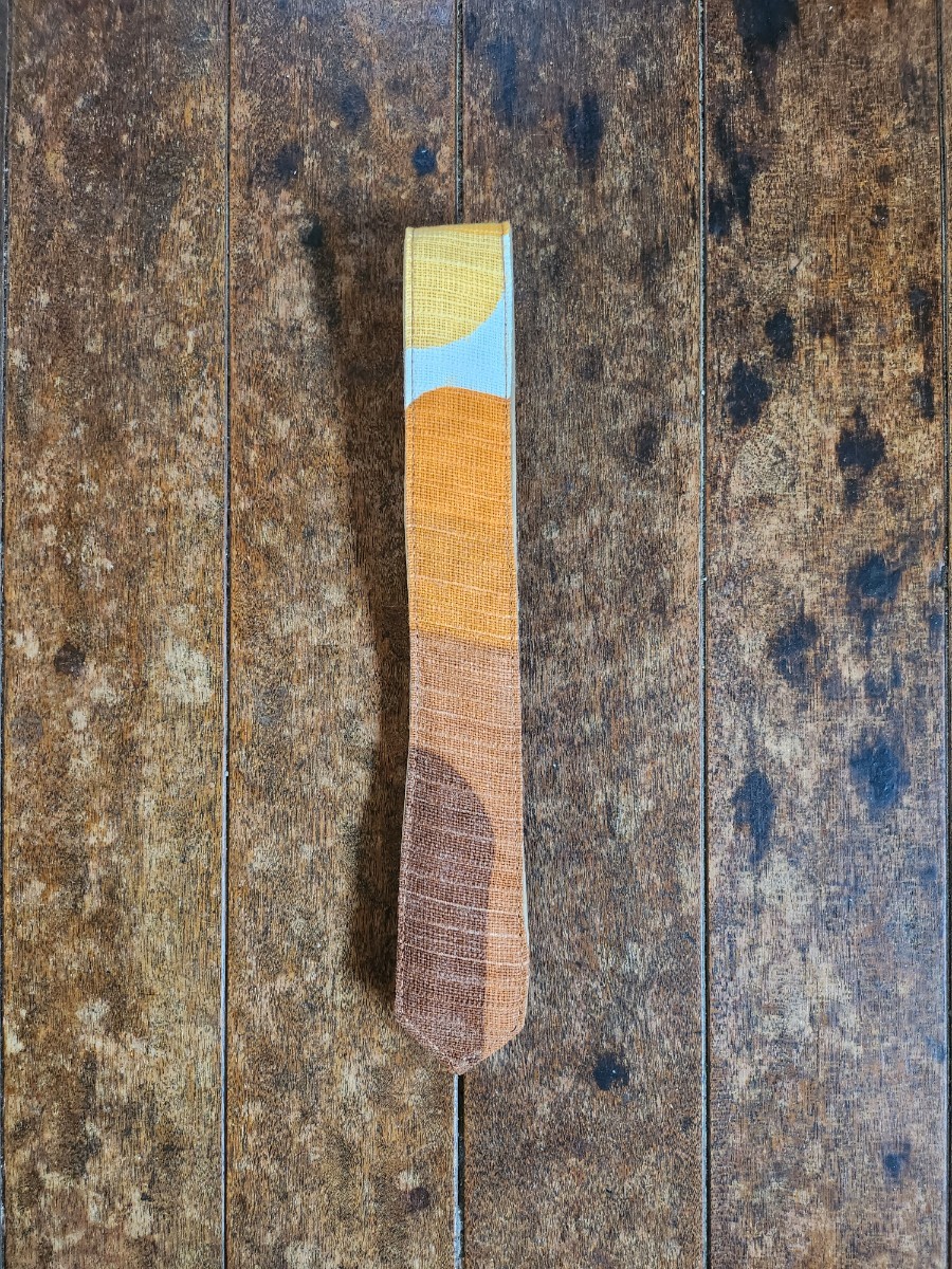 - レア ★ ビンテージ リバーシブル タイ 本 革 皮 リアル レザー カーテン リネン ヘンプ 麻 ネクタイ サイケデリック ヒッピー クラフト