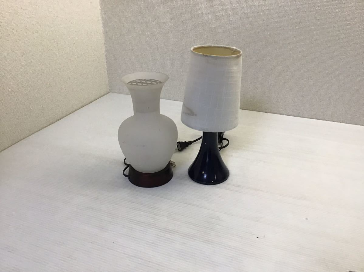 - テーブルランプ 2点セット すりガラス 布シェード 照明器具 スタンドライト 卓上 インテリア 点灯確認済 中古