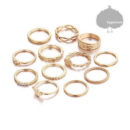 > YGG★新品 ファランジ ピンキーリング 12本 セット 金 ゴールド メッキ 指輪 華奢 細め シンプル レディース アクセサリー