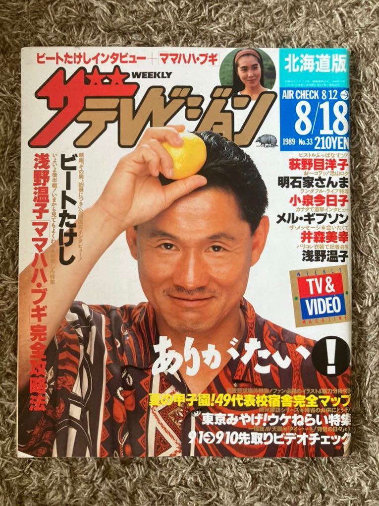 - ザ・テレビジョン 北海道版/1989年 .8.18表紙:ビートたけし/浅野温子/荻野目洋子/明石家さんま/小泉今日子/メルギブソン/井森美幸