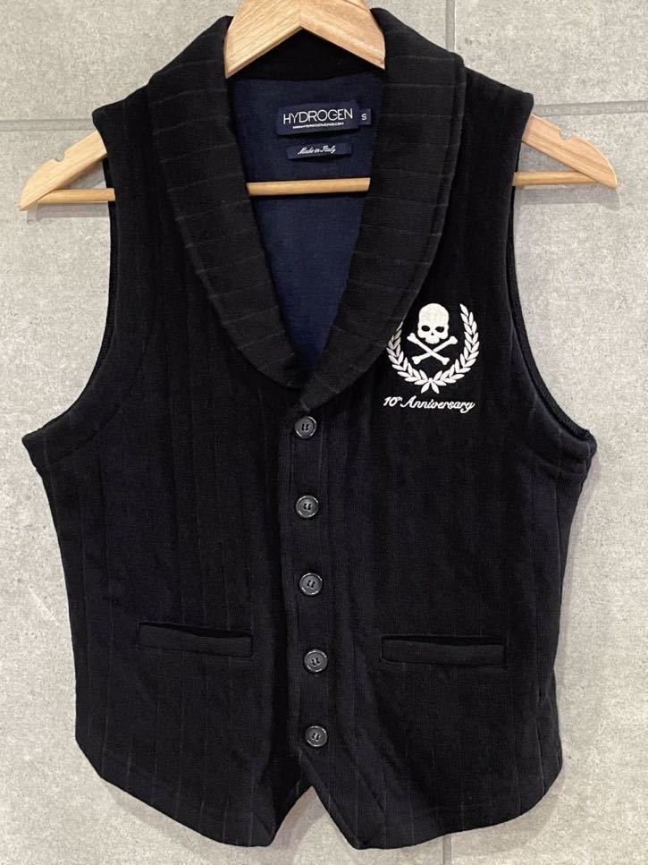 > 希少! イタリア製 HYDROGEN ハイドロゲン 10周年記念モデル 刺繍 ウール混 ベスト ジレ ストライプ ネイビー系 Sサイズ ○ 新規×
