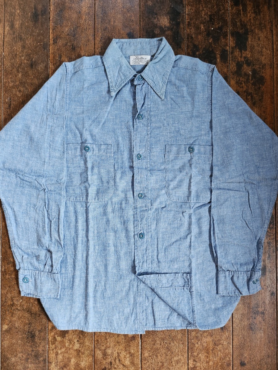 > U S N ★ アメリカ 海 軍 ネイビー 支給 実物 ベルテックス シャンブレー ワーク シャツ ビンテージ beltex 大戦 WW ミリタリー プリズナー