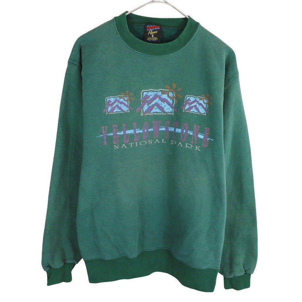 - SOFFE ソフィー YELLOWSTONEスウェット 丸首 トレーナー プリント グリーン (メンズ S) 中古 古着 O3504
