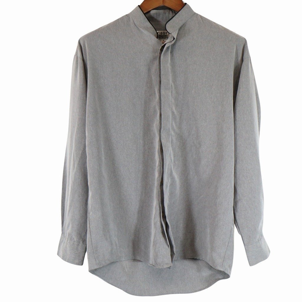 - C.I.T.Y STREETS スタンドカラー 長袖シャツ 比翼ボタン ボーダー グレー (メンズ S) 中古 古着 O4212