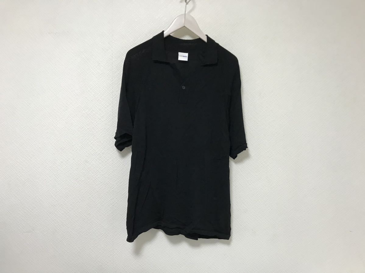 > 本物チャオパニックCIAOPANICレーヨンナイロンニット半袖ポロシャツメンズアメカジサーフゴルフビジネススーツ黒ブラックM