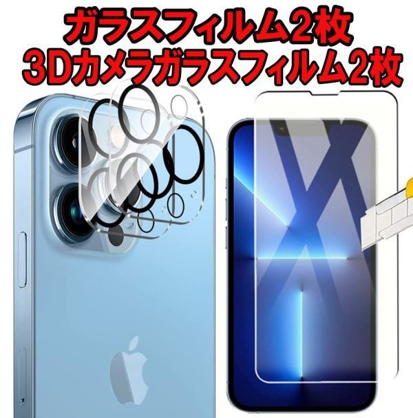 - 2セット=4枚 iPhone 13 Pro Max ブルーライトカット カメラ ガラス フィルム レンズ プロ マックス 保護 シール シート カバー Film 9H