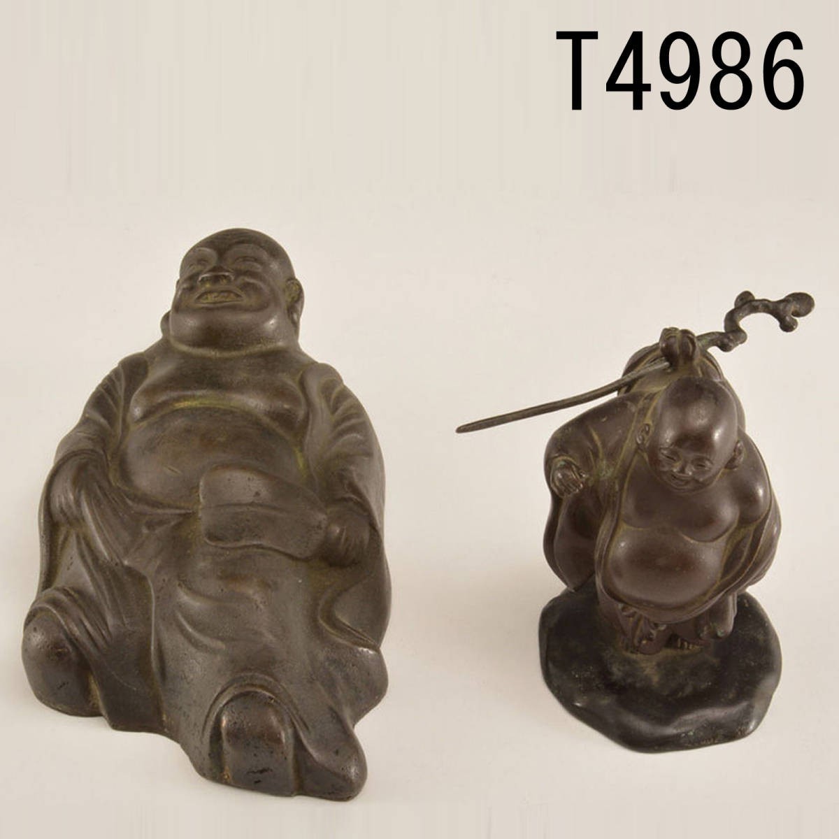 - T04986 黄銅ホテイ掛花生、置物1:真作