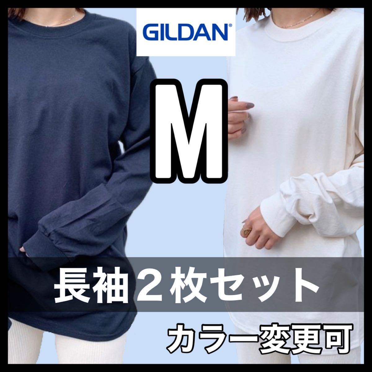 > 新品未使用 ギルダン 6oz ウルトラコットン 無地 長袖Tシャツ ロンT 黒 ブラック ナチュラル 2枚セット Mサイズ ユニセックス GILDAN