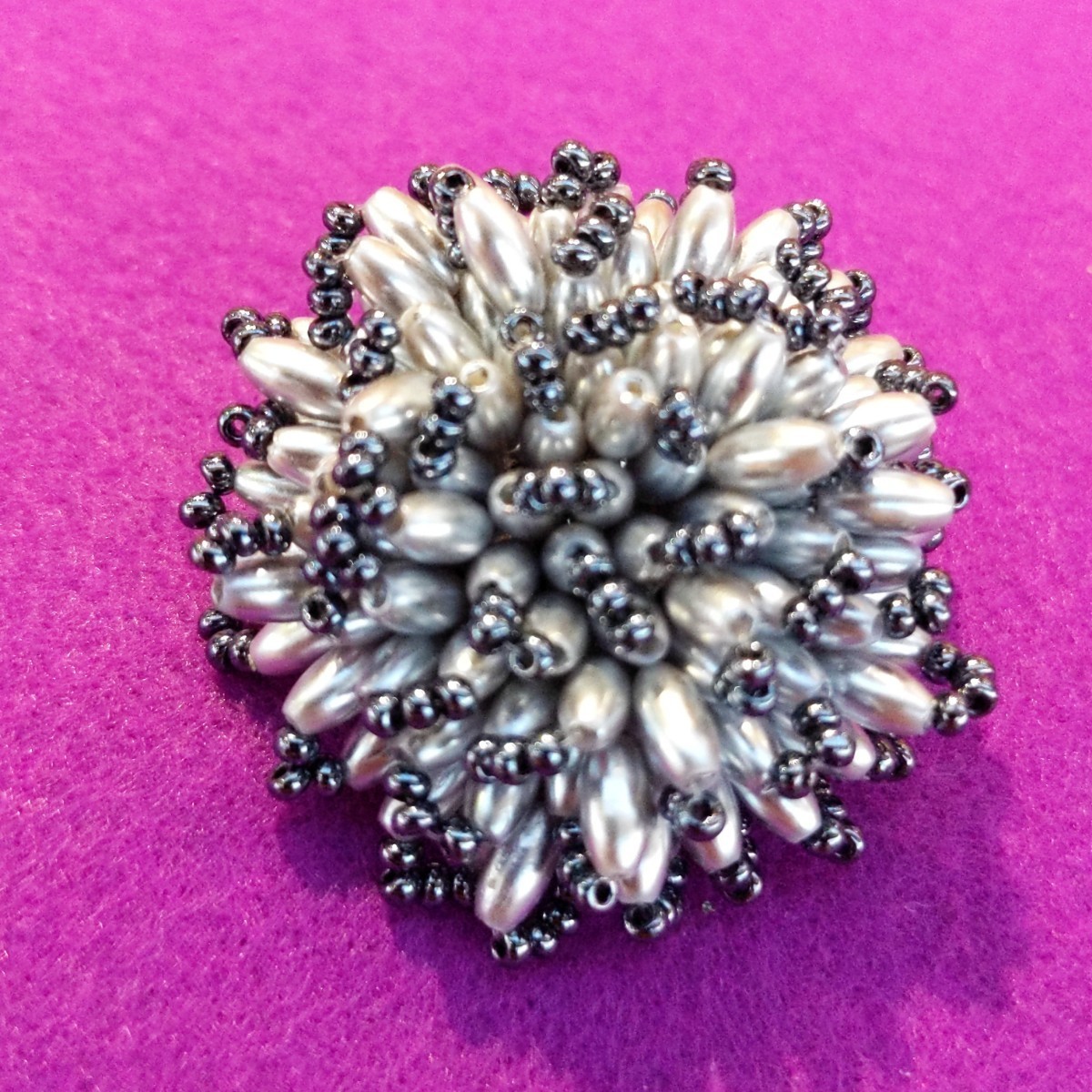> アンティークブローチ ビーズ ビジュー フラワー ライトグレー グレー 昭和レトロ アンティーク ヴィンテージ コレクション 年代物