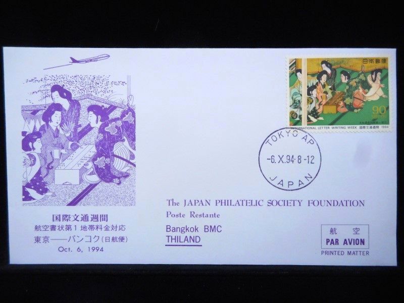 - 国際文通週間航空便実逓(1) 東京バンコク 1994年10月6日 TOKYO AP 初日カバー FDC 日本切手 G-442