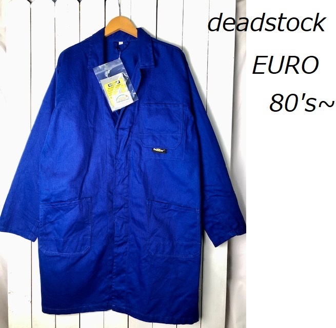 > ユーロワーク deadstock 80s~ ドイツ製 コットン 比翼ワークコート 50 青 オールド ヴィンテージ ショップコート ヨーロッパ 洗濯済 ●7