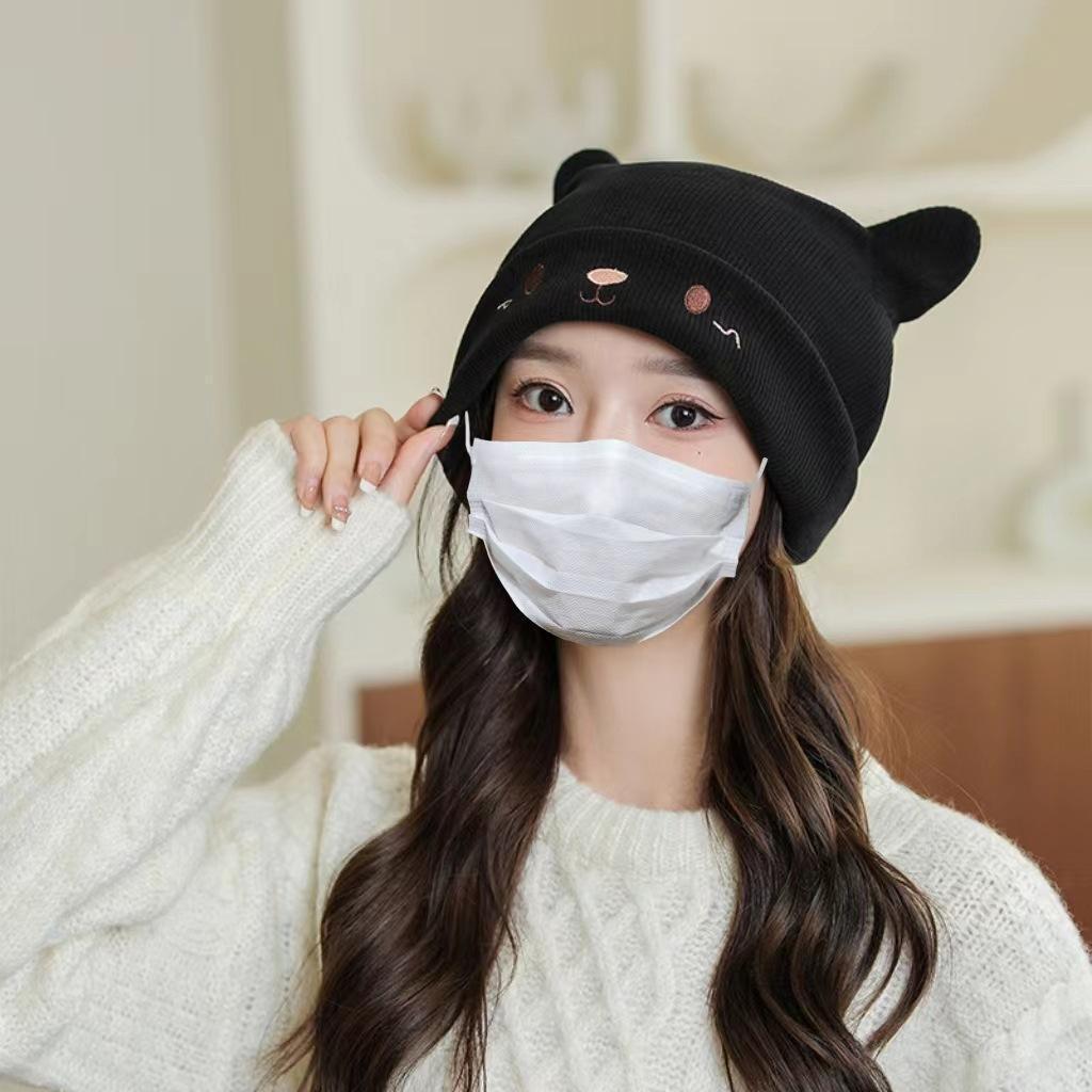 - 【ブラック】うさぎ形ニット キャップ レディース秋冬可愛い