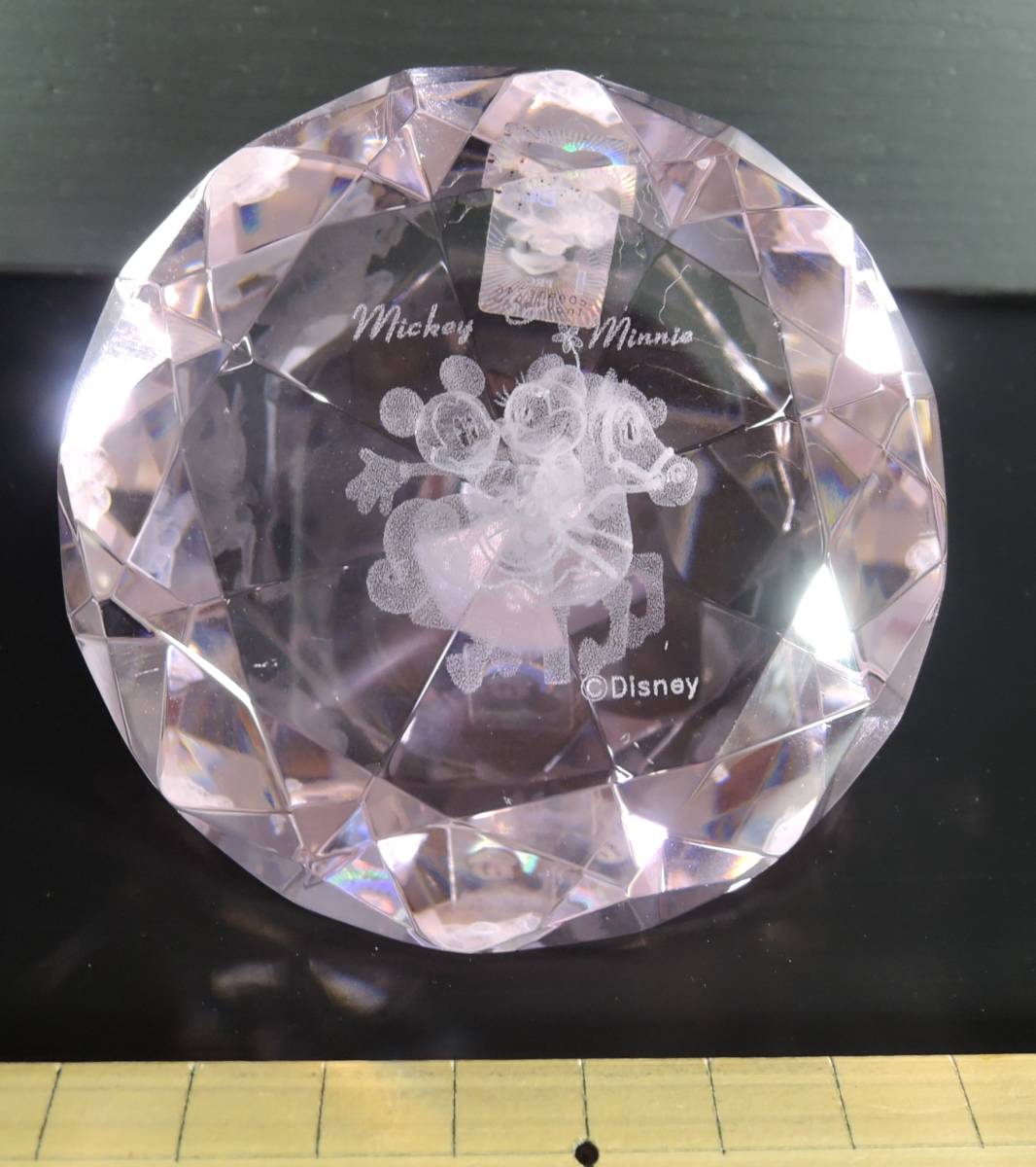 - ☆A305■ピンク・クリスタルガラス製 3D ミッキーマウス ミニーマウス 置物 ダイヤモンドカット■直径77mm/ダイヤ型