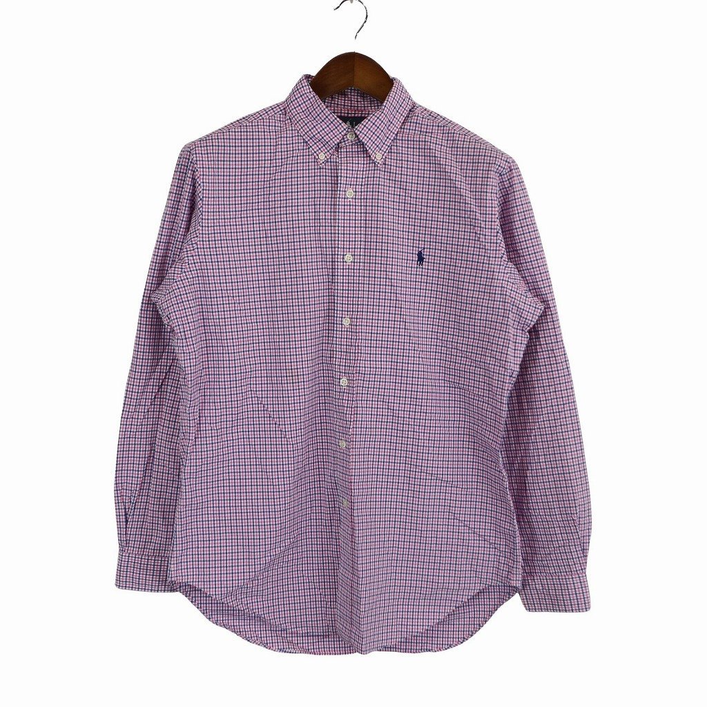 - RALPH LAUREN ラルフローレン 長袖シャツ 刺繍 ワンポイントロゴ チェック柄 ピンク (メンズ M) 中古 古着 O5276