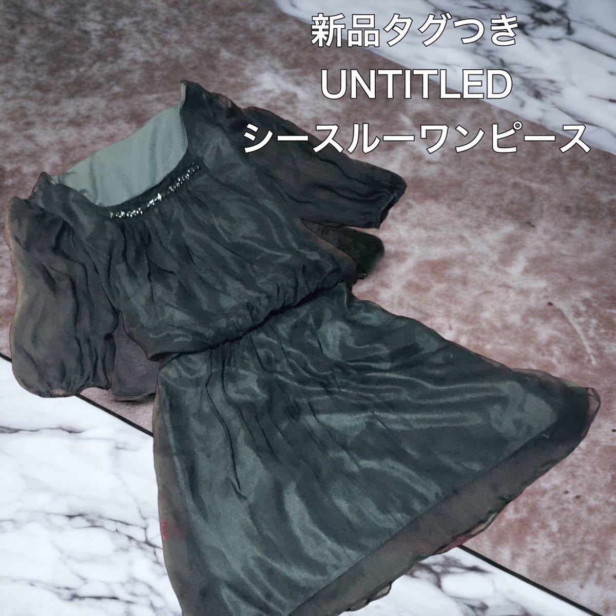 > 【新品 タグ付き】untitled ワンピース シースルー カーキ ビジュー 膝丈 アンタイトル ワールド ワンピ ゆったり