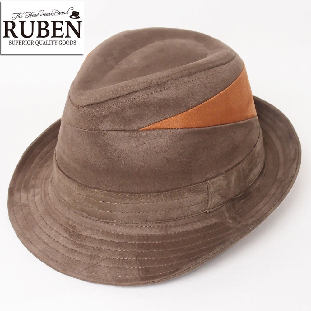 - 新品 RUBEN ルーベン パッチワーク エコスエード 中折ハット ブラウン