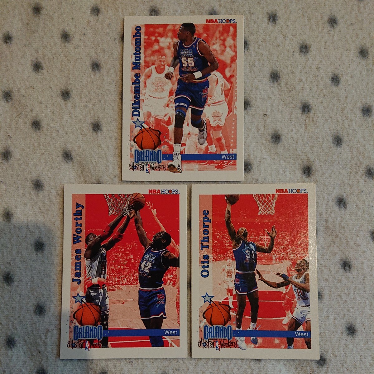 > HOOPS 1992 ☆ NBA ALL-STAR WEEKEND 1992 WEST 3枚セット ☆ DIKEMBE MUTOMBO , JAMES WORTHY , OTIS THORPE ☆ ORLANDO