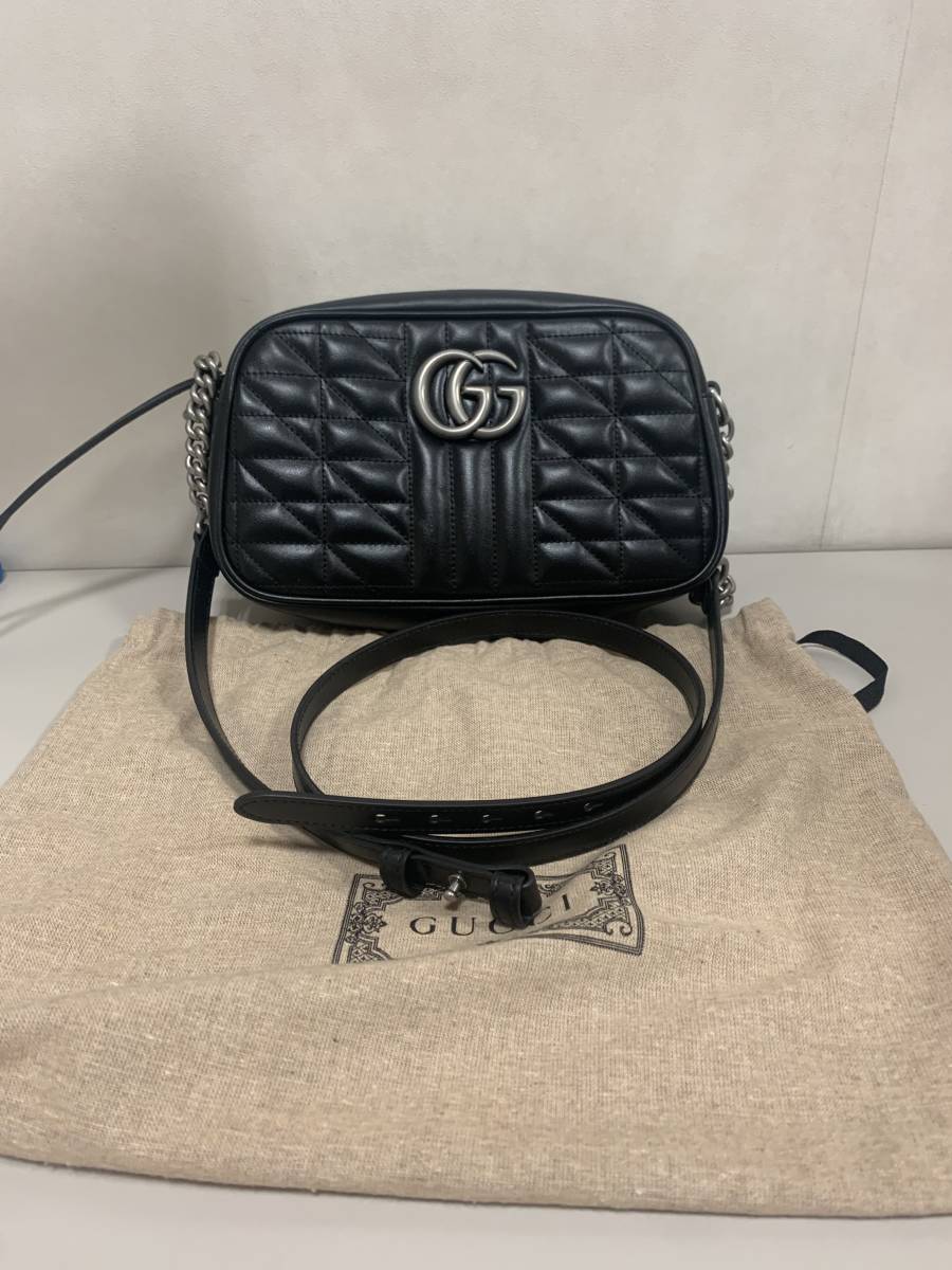 - 【質屋 尾張屋商店 東京】☆極美品☆ GUCCI グッチ GGマーモント チェーンショルダー 黒