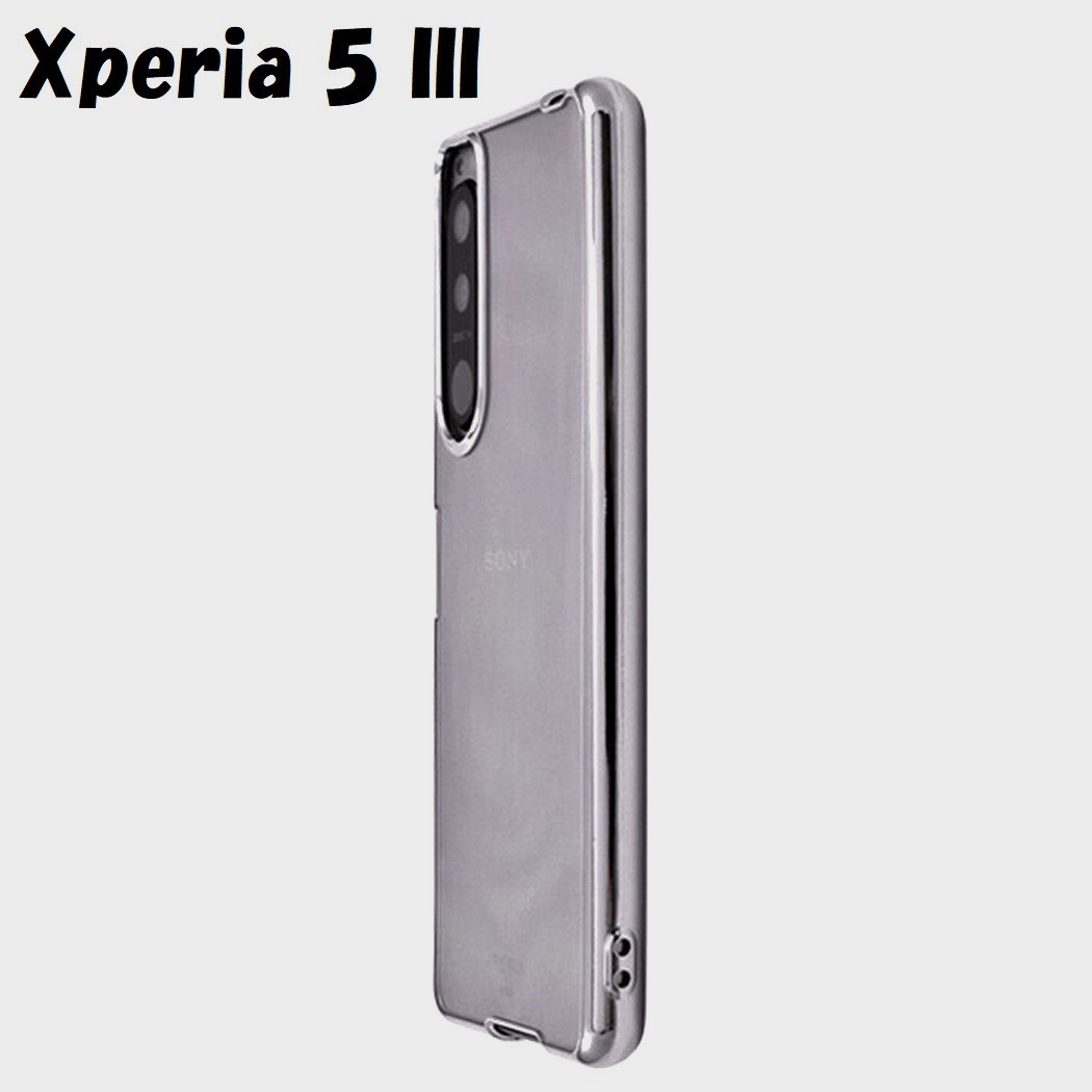 > Xperia 5 III:メタリック カラー バンパー 背面クリア ソフト ケース★シルバー 銀