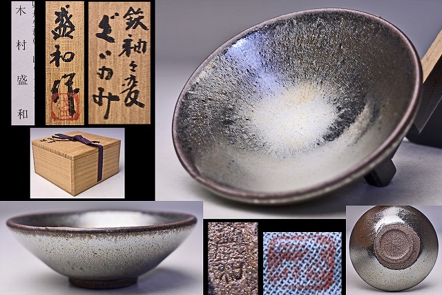 > 木村盛和 ★ 鉄釉 釉変ぐい呑 ★ 共箱 共布 栞 ★ 平杯の造形はお酒を注ぐと幻想的な景色となる逸品 ★ 酒器 ★ 検 木村盛康 木村盛伸