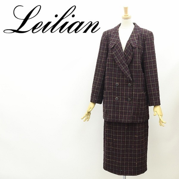 > ◆Leilian レリアン×Neill Johnstone社 モヘヤ&ラメ混 チェック柄 ダブル ジャケット&スカート スーツ セットアップ 13+ 大きいサイズ