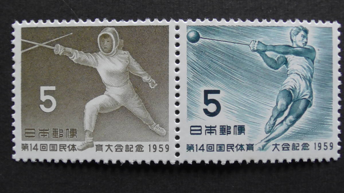 - 記念切手 第14回国民体育大会『フェンシング』 5円+『ハンマー投げ』 5円