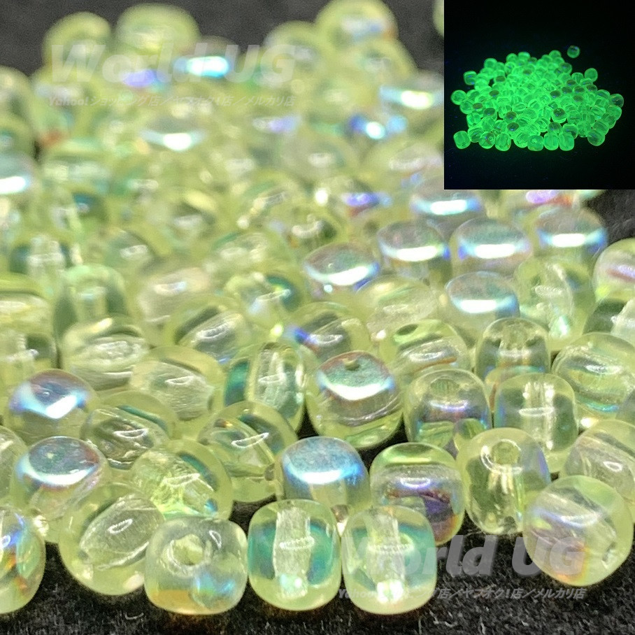 - 再入荷 ウランガラス サイコロ型ビーズ 黄色AB処理 4mm 100粒