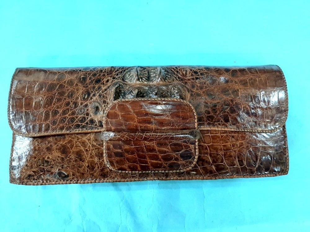 - 即決あり■アンティーク■ワニ革 セカンドバッグ ブラウン