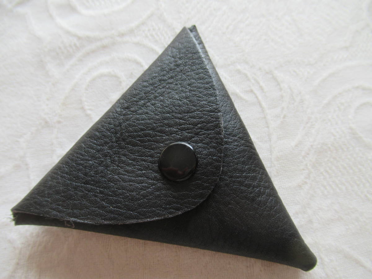 - 手作り 本革製三角財布 コインケース 小銭入れ 黒
