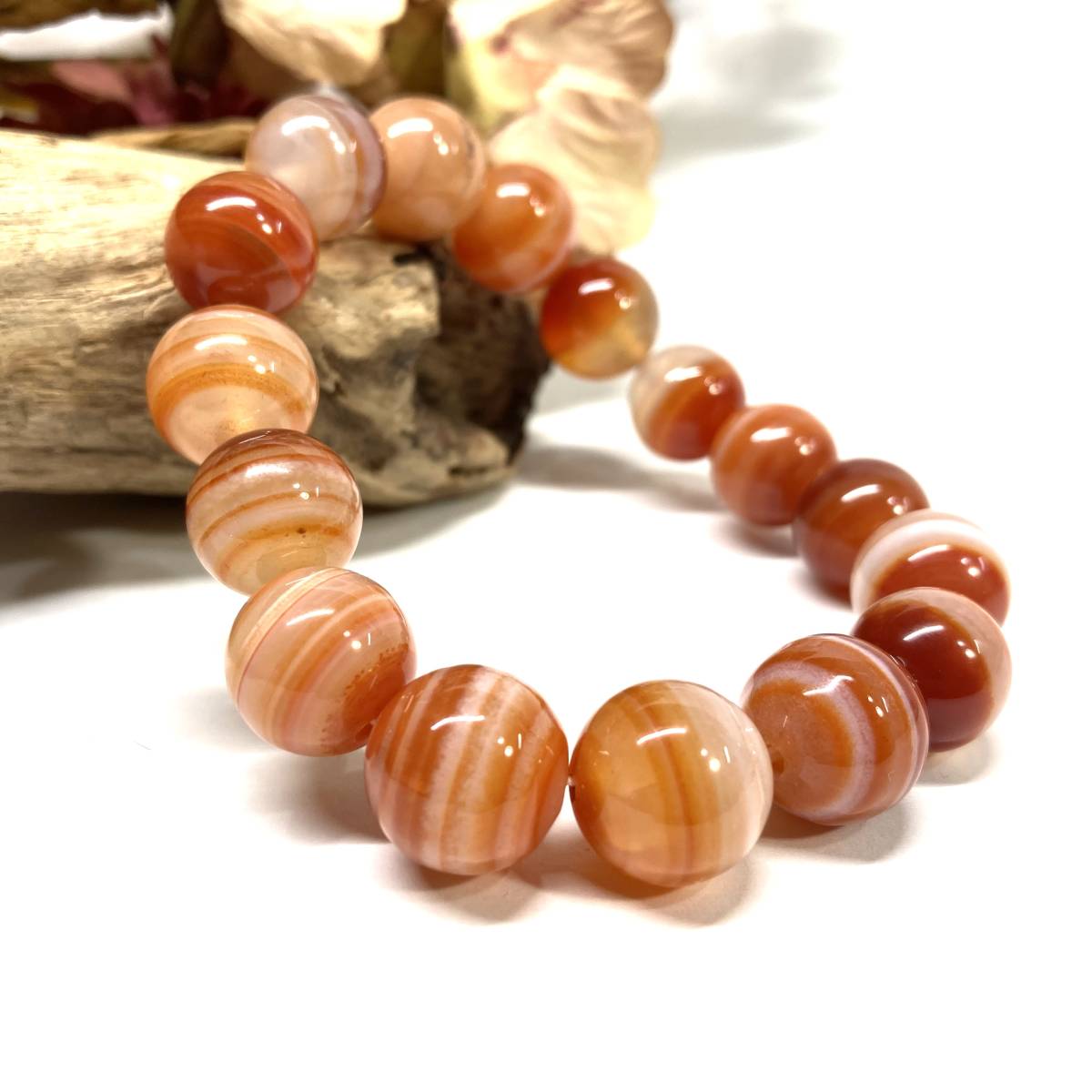 - カーネリアン・サードニクス(サードオニキス) パワーストーン ブレスレット 12mm 天然石ブレス (シンプル) メンズ・レディース 男性 女性
